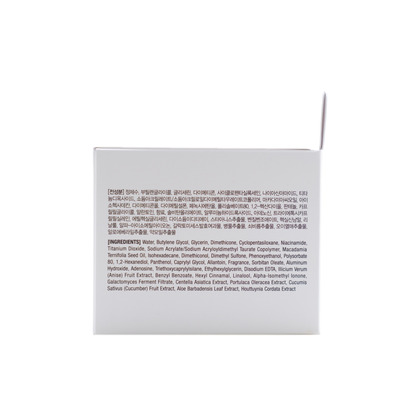 Water, Butylene Glycol, Glycerin, Dimethicone, Cyclopentasiloxane, Niacinamide, Titanium Dioxide, Sodium Acrylate, Macadamia Ternifolia Seed Oil, Panthenol, Cucumis Sativus (Cucumber) Fruit Extract, Aloe Barbadensis Leaf Extract