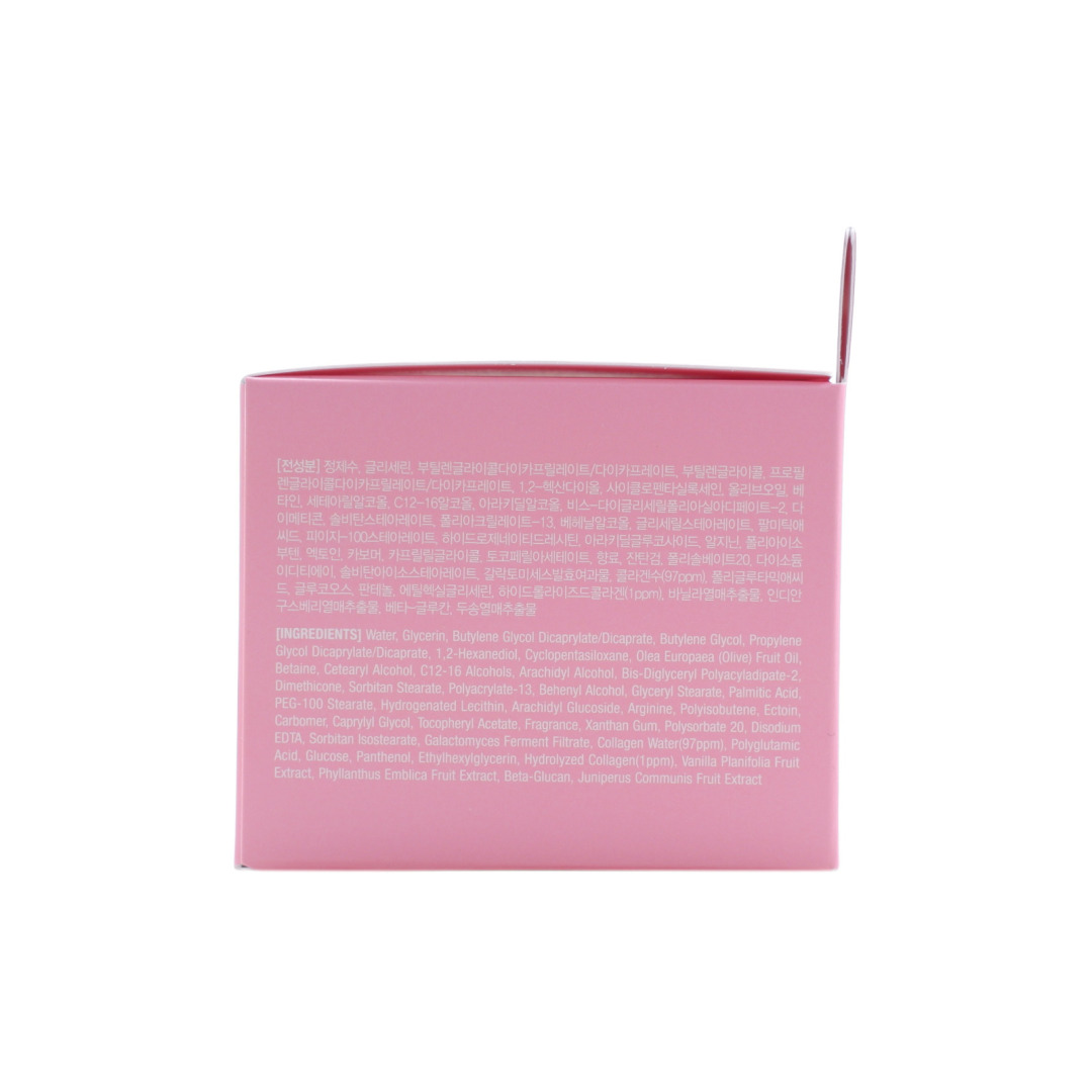 Water, Glycerin, Butylene Glycol, Cetearyl Alcohol, Sorbitan Stearate, Collagen Water, Disodium EDTA, Glucose, Panthenol, Hydlolyzed Collagen, Vanilla Planifolia Fruit Extract
