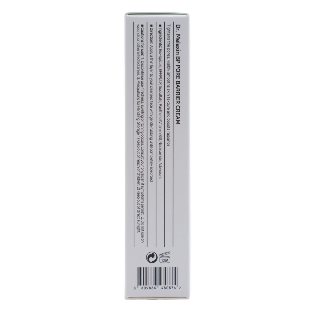 "Изг-ль: BRAND 501 Co., Ltd., Корея, Республика, 20, Achasan-ro 9-gil, Seongdong-gu, Seoul. Dr.Melaxin BP Pore Barrier Cream — финальный крем для сужения пор с PDRN и технологией Bio-Spicule. PDRN стимулирует клеточную регенерацию, восстанавливает барьер кожи и уменьшает видимые поры. Bio-Spicule обеспечивает лёгкое, глубокое проникновение активных компонентов в эпидермис.