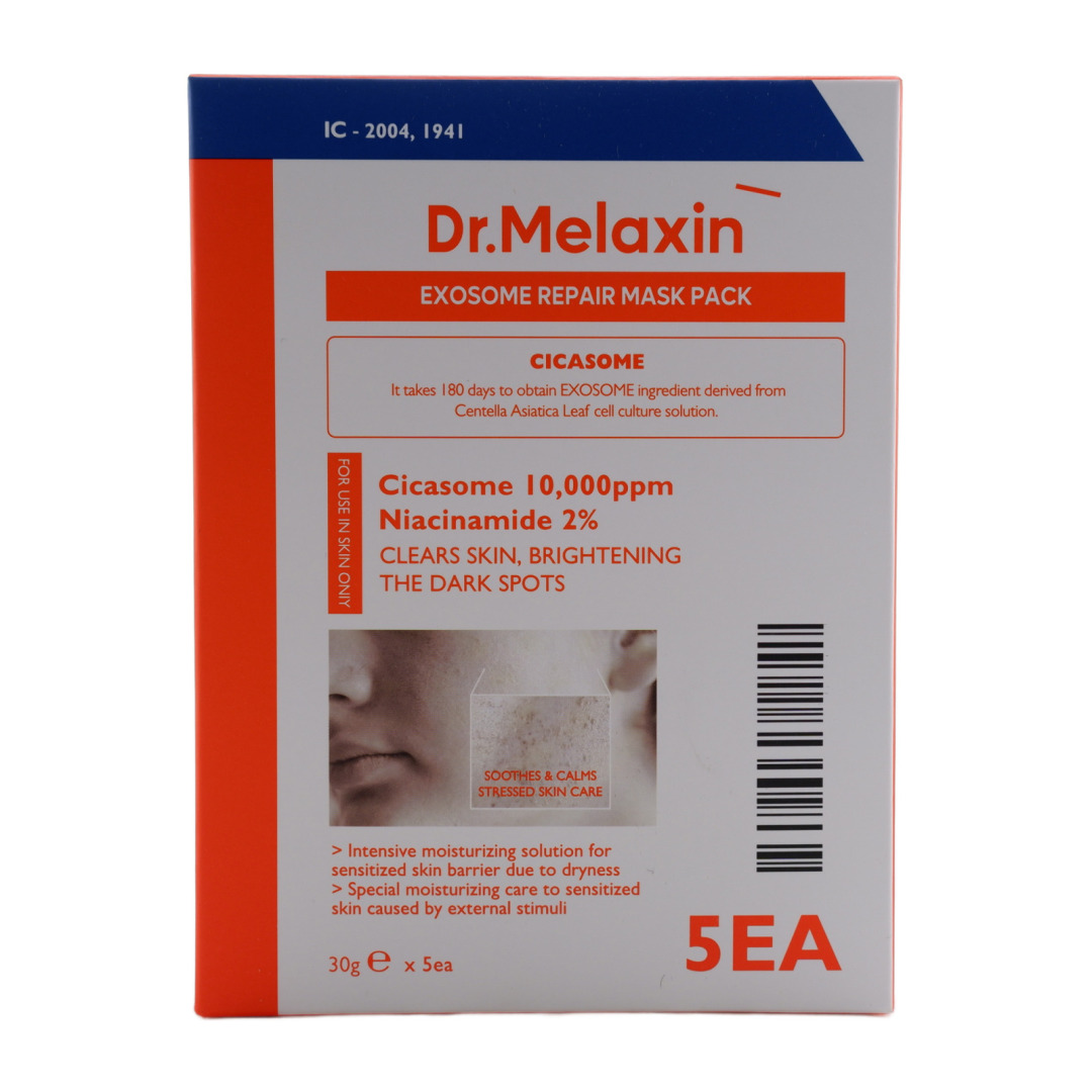 Изг-ль: BRAND 501 Co., Ltd., Корея, Республика, 20, Achasan-ro 9-gil, Seongdong-gu, Seoul. Набор из пяти восстанавливающих тканевых масок с запатентованным комплексом Cica-Exosome для интенсивного восстановления проблемной и чувствительной кожи. Маски содержат экзосомы центеллы азиатской, которые глубоко проникают в кожу и активируют процессы заживления. Обогащены ниацинамидом, пантенолом, адeнозином, керамидом NP и гиалуроновой кислотой для увлажнения и укрепления барьера. Растительные компоненты включают экстракты центеллы, куркумы, священного базилика, хауттюйнии, дерева нима для успокоения раздражения и заживления. Каждая маска наполнена концентрированной эссенцией, обеспечивающей интенсивное питание. Клинически доказана безопасность. Особенно эффективны для лечения следов акне, пигментных пятен и постпроцедурного восстановления кожи.