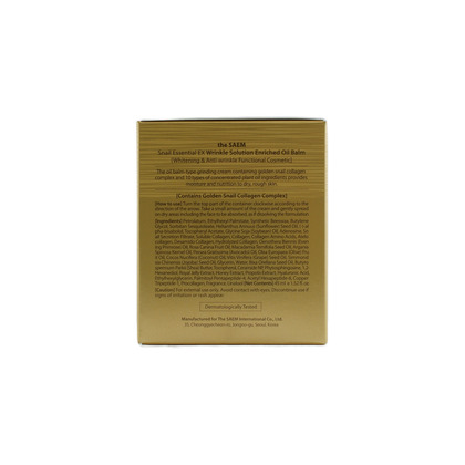 Изг-ль: The Saem International Co., Ltd., 10F, 35, Cheonggyecheon-ro, Jongno-gu, Seoul, Республика Корея. Бальзам-масло для интенсивного увлажнения и питания сухой и огрубевшей кожи, содержит комплекс коллагена + экстракт золотой улитки, 10 видов растительных масел. Нежный бальзам при нанесении на кожу тает, словно масло, наполняет кожу влагой, придает сияние. Оказывает интенсивный уход за глубокими морщинами, укрепляет кожный барьер. Способ применения: поверните верхнюю часть контейнера по часовой стрелке. Измельчите содержимое небольшими порциями до желаемого количества. Средство можно смешивать с кремом или тональным средством. Аккуратно распределите средство на сухие участки (лицо, губы, руки, ноги и т.д.)