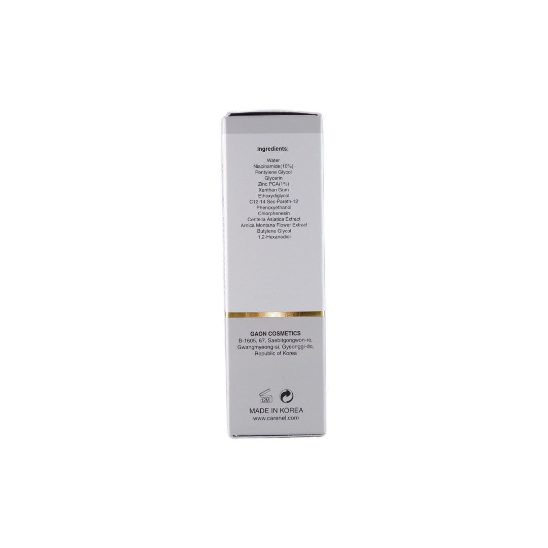 Water, Niacinamide, Pentylene Glycol, Glycerin, Zinc PCA, Xanthan Gum, Ethoxydiglycol, C12-14 Sec-Pareth-1, Phenoxyethanol, Chlorphenesin, Centella Asiatica Extract, Arnica Montana Flower Extract, Butylene Glycol, 1,2-Hexanediol