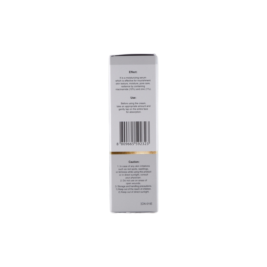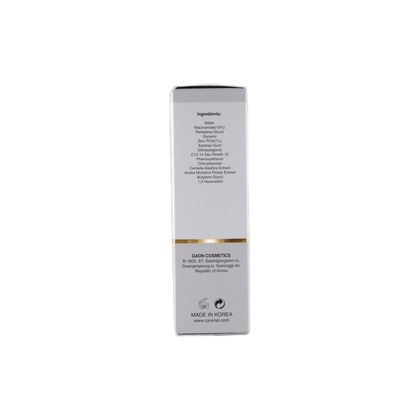 Изг-ль: GAON COSMETICS, Корея, Республика, B-1605, 67, Saebitgongwon-ro, Gwangmyeong-si, Gyeonggi-do. Главными компонентами являются ниацинамид 10% и цинк 1%. Ниацинамид предотвращает появление пигментации, цинк ускоряет заживление воспалений и работает на профилактику их появления, очищает от омертвевших клеток, обеспечивает увлажнение. Также сыворотка придает сияние и мягкость коже. Средство также сужает поры, придает мягкость и сияние кожи. Способ применения: на очищенную и подсушенную кожу лица равномерно нанесите, небольшое количество средства и мягко распределите массажными движениями, избегая области глаз и губ. Сыворотку можно использовать утром и вечером.