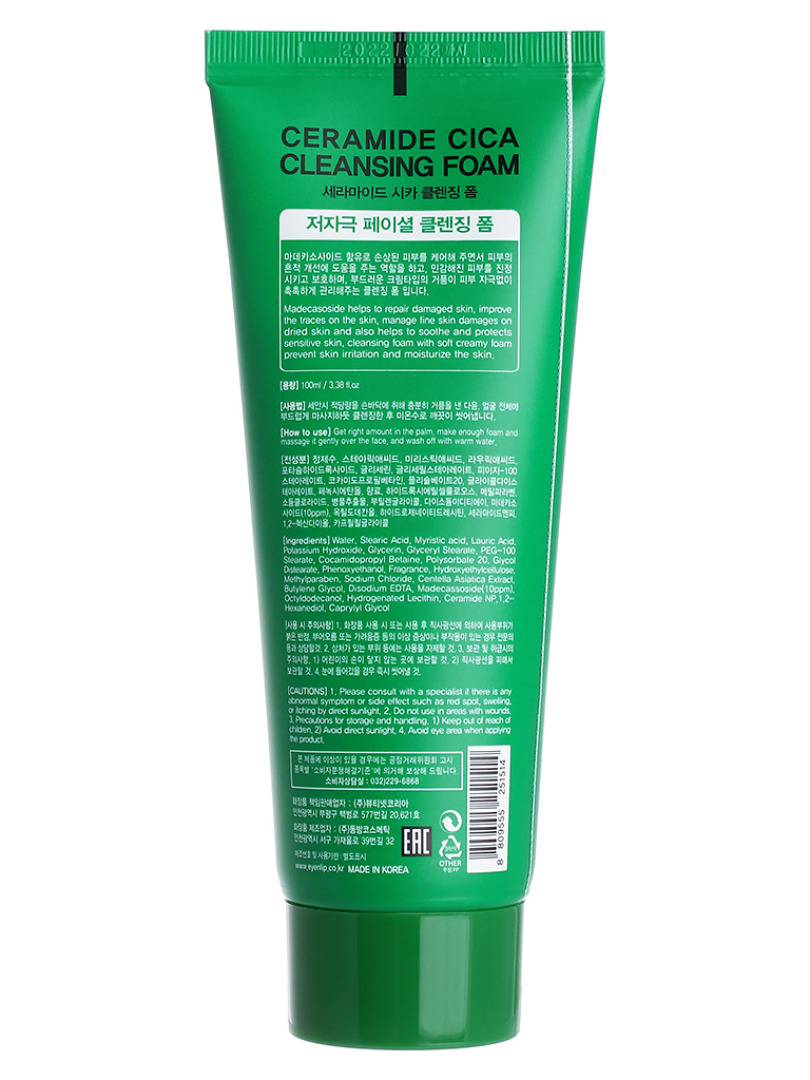 Water, Stearic Acid, Myristic acid, Lauric Acid, Potassium Hydroxide, Glycerin, Glyceryl Stearate, PEG-100 Stearate, Cocamidopropyl Betaine, Polysorbate 20, Glycol Distearate, Phenoxyethanol, Fragrance, Hydroxyethylcellulose, Methylparaben, Sodium Chloride, Centella Asiatica Extract, Butylene Glycol, Disodium EDTA, Madecassoside(10ppm), Octyldodecanol, Hydrogenated Lecithin, Ceramide NP, 1,2-Hexanediol, Caprylyl Glycol