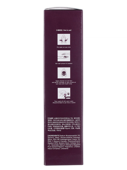 Изг-ль: Beautynet Korea Co. Ltd., КОРЕЯ, РЕСПУБЛИКА, 20, Baekbeom-ro 577beon-gil, Bupyeong-gu, Incheon. Скраб для лица бережно очищает кожу, вытягивает черные точки и сужает поры. Очищает и тонизирует кожу, не пересушивая ее, избавляет от жирного блеска. Скраб для лица глубоко проникает в поры очищая их, отшелушивает ороговевшие клетки кожи, удаляет загрязнения и остатки макияжа. Содержит экстракт баклажана, успокаивает и увлажняет кожу. Применение: нанесите средство на влажное лицо, аккуратно помассируйте, кроме области вокруг глаз и рта, затем смойте теплой водой.