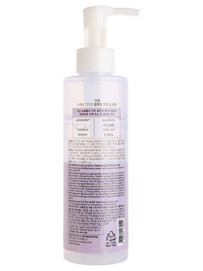 Изг-ль: "THE SAEM INTERNATIONAL CO.LTD.", КОРЕЯ, РЕСПУБЛИКА, 10F, 35, Cheonggyecheon-ro, Jongno-gu, Seoul. Средство на основе натуральных масел для глубокого очищения кожи от водостойкого макияжа и различного рода загрязнений. Сохраняет оптимальный гидро-липидный баланс кожи после очищения, не нарушает липидный барьер.