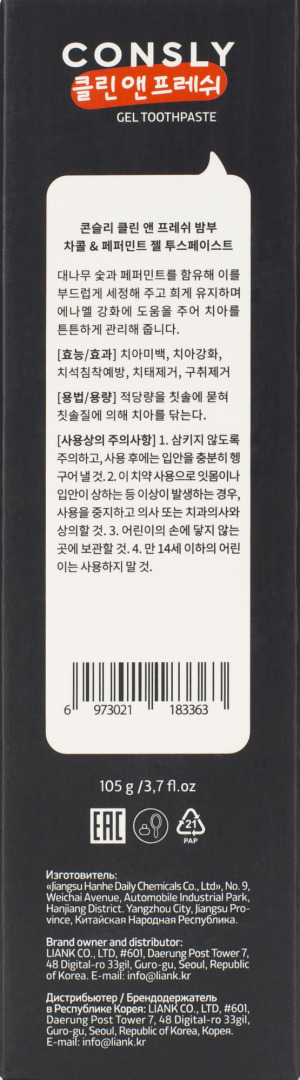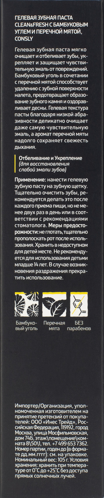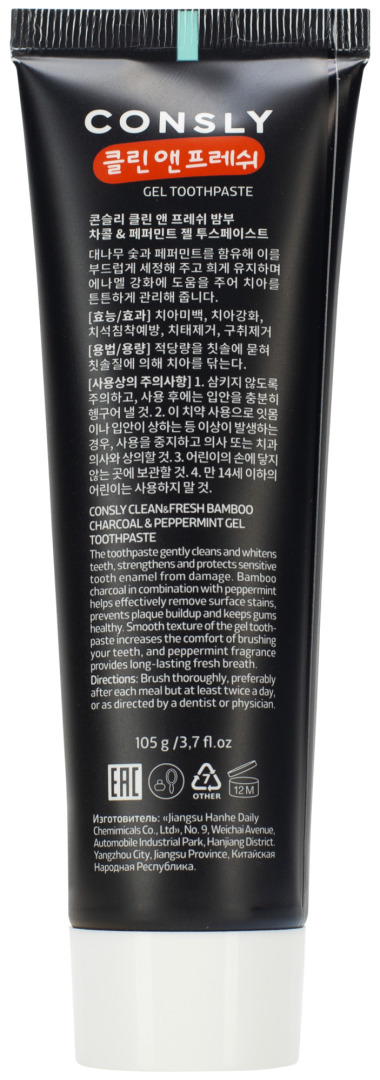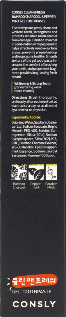 CNS Toothpaste Паста зубная гелевая Clean&Fresh с бамбуковым углем и перечной мятой Bamboo Charcoal & Peppermint Gel Toothpaste, 105г (брак/ скидка 10% Замята упаковка)