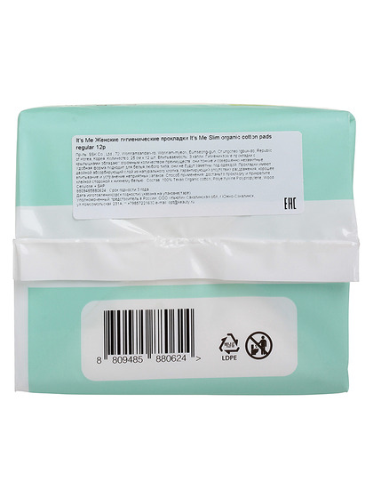 It's Me organic cotton Прокладки женские гигиенические с крылышками, 4 капли It's Me Slim organic cotton pads regular 12p