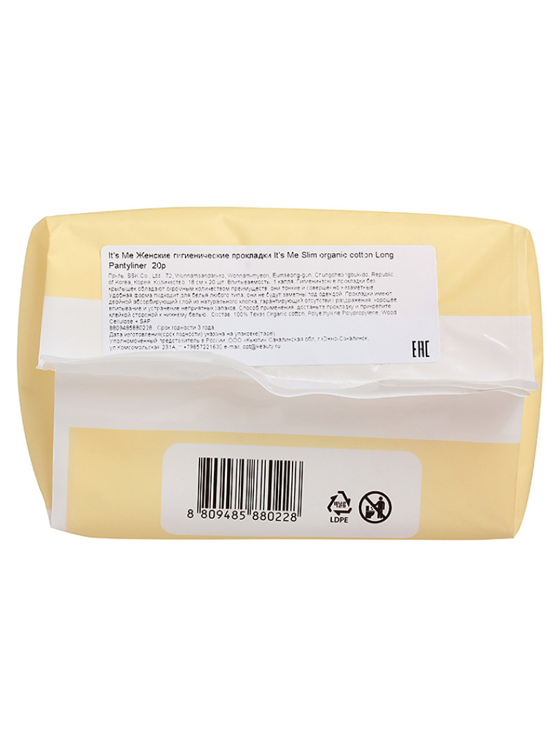 It's Me organic cotton Прокладки женские гигиенические ежедневные, 1 капля It's Me Slim organic cotton Long Pantyliner 20p
