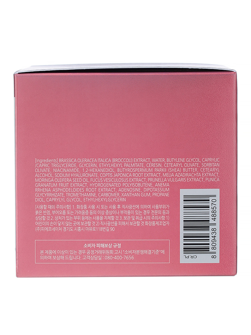 Brassica Oleracea Italica (Broccoli) Extract, Water, Butylene Glycol, Caprylic/Capric Triglyceride, Glycerin, Ethylhexyl Palmitate, Ceresin, Cetearyl Olivate, Sorbitan Olivate, Niacinamide, 1,2-Hexanediol, Butyrospermum Parkii (Shea) Butter, Cetearyl Alcohol, Sodium Hyaluronate, Coptis Japonica Root Extract, Melia Azadirachta Extract, Moringa Oleifera Seed Oil, Fucus Vesiculosus Extract, Prunella Vulgaris Extract, Punica Granatum Fruit Extract, Hydrogenated Polyisobutene, Anemarrhena Asphodeloides Root Extract, Adenosine, Dipotassium Glycyrrhizate, Tromethamine, Carbomer, Xanthan Gum, Propanediol, Caprylyl Glycol, Ethylhexylglycerin