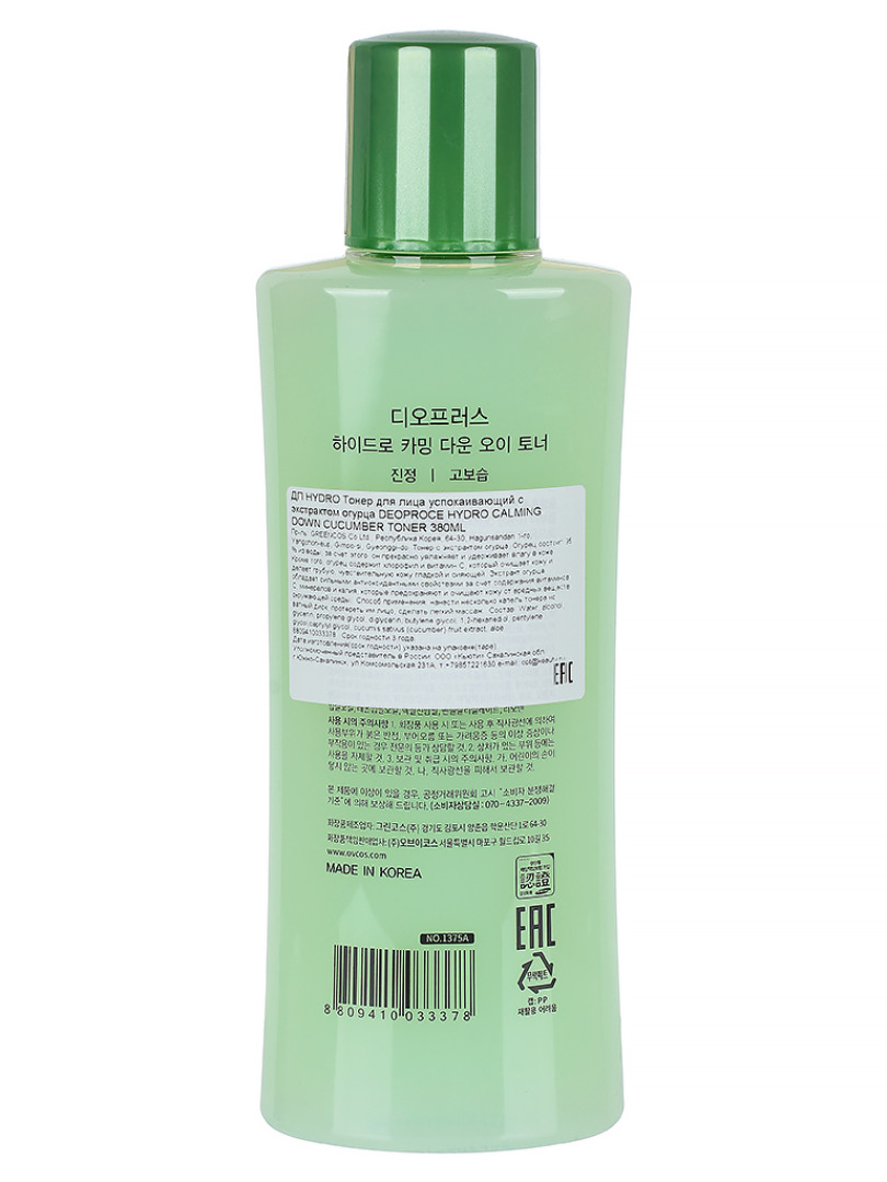 ДП HYDRO Тонер для лица успокаивающий с экстрактом огурца DEOPROCE HYDRO CALMING DOWN CUCUMBER TONER 380ML