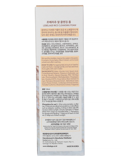 LBLG FOAM Пенка для лица очищающая с экстрактом риса LEBELAGE CLEANSING FOAM 100ml - RICE