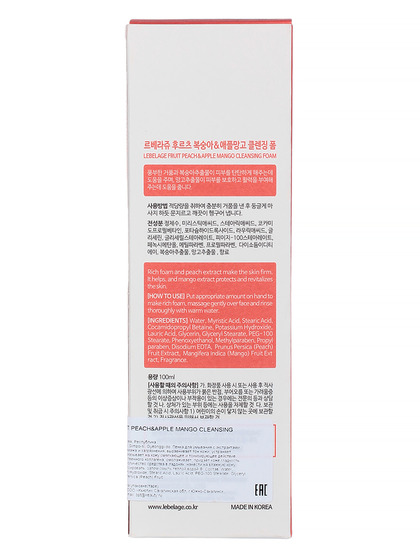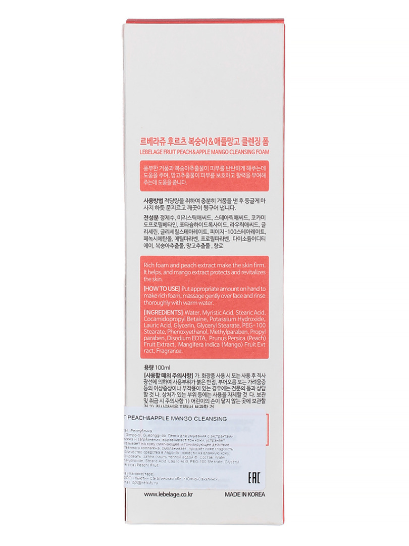 LBLG FOAM Пенка для лица очищающая с экстрактами персика и манго LEBELAGE FRUIT PEACH&APPLE MANGO CLEANSING FOAM