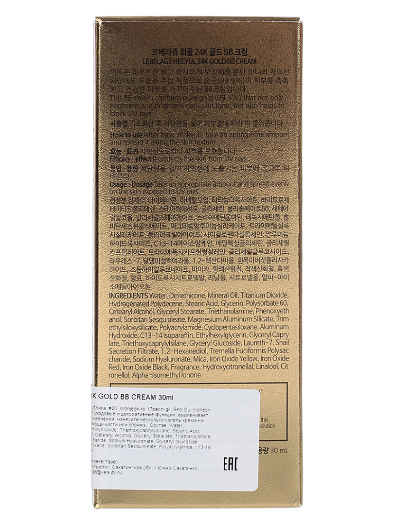 LBLG HEEYUL Крем ББ для лица с 24К золотом LEBELAGE HEEYUL 24K GOLD BB CREAM 30ml