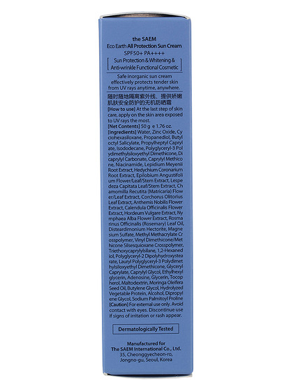 Изготовитель: THE SAEM INTERNATIONAL CO.LTD., КОРЕЯ, РЕСПУБЛИКА, 10F, 35, Cheonggyecheon-ro, Jongno-gu, Seoul. Солнцезащитный крем предназначен для надежной защиты от УФ-излучения кожи, особенно необходим очень светлой коже, а также для кожи с аллергическими реакциями. Благодаря солнцезащитному фильтру SPF50+ PA+++ эффективен в отношении UV-А и UV-B лучей. В составе крема уникальный комплекс натуральных экстрактов и масел, который предупреждает разрушение клеток, ускоряет их регенерацию. Способ применения: Наносить крем перед каждым выходом на открытое солнце. При длительном пребывании на солнце повторять нанесение. Уменьшение количества крема или неравномерное распределение значительно снизит уровень защиты.