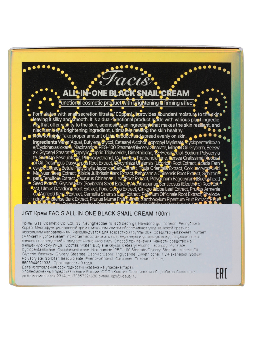 JGT Facis Крем для лица многофункциональный с муцином улитки FACIS ALL-IN-ONE BLACK SNAIL CREAM 100ml