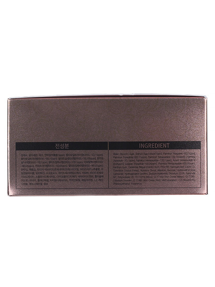 Water, Glycerin, Agar, Hydroxyethyl Urea, Xanthan Gum, Ceratonia Siliqua (Carob) Gum, Butylene Glycol, PEG-60 Hydrogenated Castor Oil, Carrageenan, Carbomer, Allantoin, Methylparaben, Sucrose, Disodium EDTA, Mica, CI 77492, Titanium Dioxide, Fragrance, Salmon Oil, CI 77491, Hydrogenated Lecithin, Ceramide NP, 1,2-Hexanediol, Polysorbate20, Phenoxyethanol, Palmitoyl Tripeptide-1, Palmitoyl Tripeptide-5, Palmitoyl Tetrapeptide-7, Palmitoyl Dipeptide-7, Palmitoyl Hexapeptide-12 , Acetyl hexapeptide-8, Copper Tripeptide-1, Palmitoyl pentapeptide-4