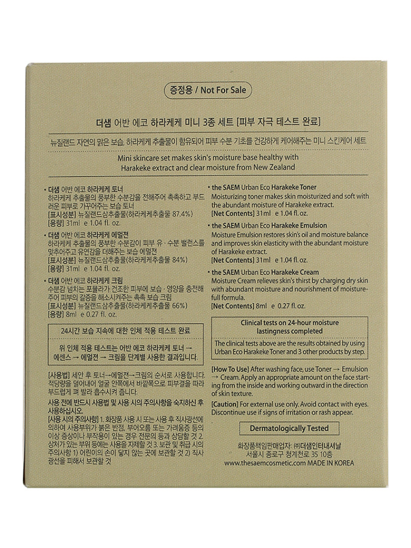 Изг-ль: THE SAEM INTERNATIONAL CO.LTD., КОРЕЯ, РЕСПУБЛИКА, 10F, 35, Cheonggyecheon-ro, Jongno-gu, Seoul. Функциональный набор, позволяющий ухаживать за кожей лица во время кратковременных поездок. В наборе 3 средства: тонер, эмульсия и крем, которые обеспечивают и глубокое тщательное очищение, и полноценный уход. Все средства увлажняют, питают, смягчают и успокаивают кожу. Способ применения: нанести тоник на очищенную кожу лица при помощи ватного диска или непосредственно руками, слегка похлопывая, после чего использовать эмульсию и/или крем.