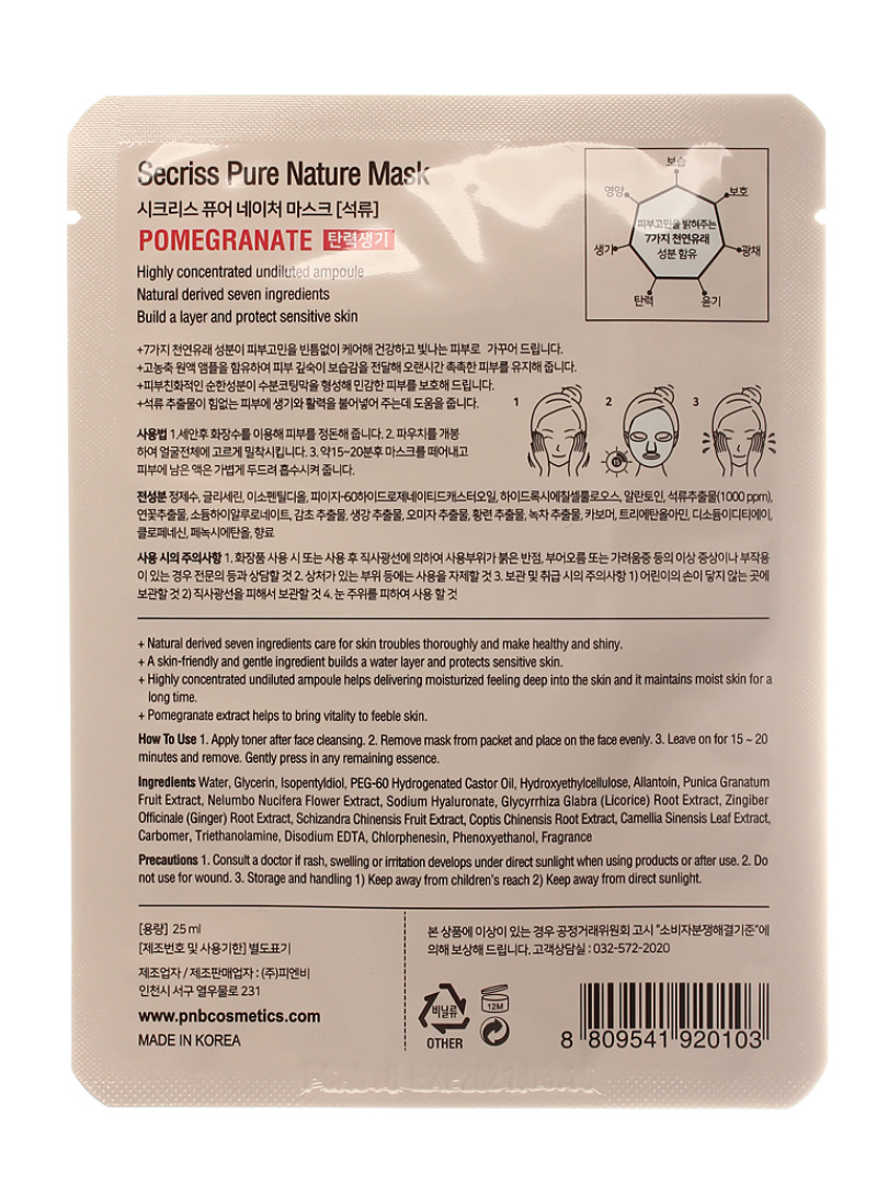 АН Secriss Маска тканевая Secriss Pure Nature Mask Pack- Pomeganate 25мл (С/Г до 01.06.2025 скидка 60%)