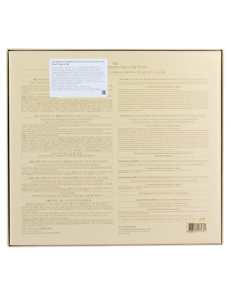 СМ Snail Essential Набор для лица уходовой косметики антивозрастной (крем, эссенция, пенка, тонер, эмульсия) Snail Essential EX Wrinkle Solution Essen