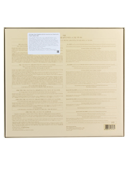 Изг-ль: THE SAEM INTERNATIONAL CO.LTD., КОРЕЯ, РЕСПУБЛИКА, 10F, 35, Cheonggyecheon-ro, Jongno-gu, Seoul. Набор антивозрастной серии с муцином улитки, коллагеновым комплексом и экстрактом маточного молочка. Набор предназначен для эффективной борьбы со старением кожи. Средства оказывают многофункциональное действие, главные из которых: увлажнение и регенерация кожи, разглаживание морщин и осветление нежелательной пигментации. В наборе: крем, эссенция, пенка и 2 миниатюры тонер, эмульсия. Способ применения: после очищения кожи протереть лицо ватным диском, смоченным тонером, нанести, эссенцию, эмульсию, затем крем.