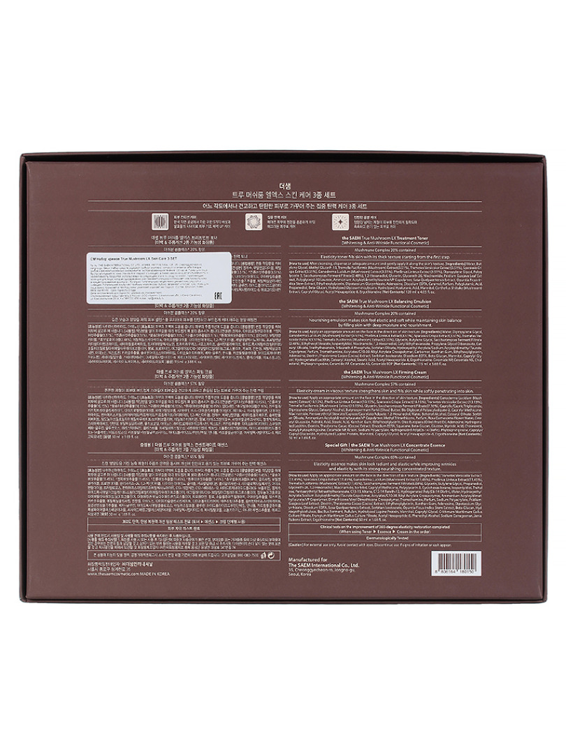 Пр-ль: THE SAEM INTERNATIONAL CO.LTD., КОРЕЯ, РЕСПУБЛИКА, 10F, 35, Cheonggyecheon-ro, Jongno-gu, Seoul. Набор средств содержит грибной комплекс, который сочетает в себе 5 видов грибов и ферментированных ингредиентов, экстрагированных в течение 100 часов. Тонер для лица быстро впитывается, кожа становится гладкой и сияющей, а также максимизирует впитываемость и эффективность продуктов, используемых на следующем этапе по уходу за кожей. Укрепляющая эссенция для лица, которая одновременно разглаживает морщины и повышает эластичность кожи, а концентрированная формула с богатыми питательными веществами делает кожу упругой и сияющей. Питательная эмульсия с грибным комплексом глубоко увлажняет и питает кожу. Крем для лица нежно проникает в текстуру кожи, укрепляет и делает ее гладкой.