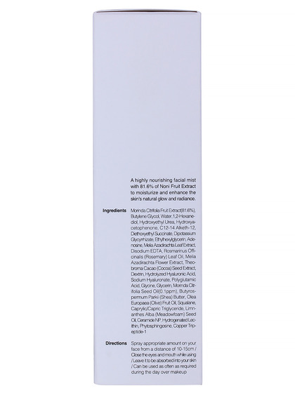 Изг-ль: ABSORBLAB Co., Ltd., 11F, Samseong-ro 85 gil 26, Gangnam-gu, Seoul, Республика Корея. Восстанавливающий ампульный мист на основе нони увлажняет, освежает и успокаивает, оказывает антивозрастное действие за счёт мощных антиоксидантов и питательных веществ. Продукт повышает упругость, выравнивает тон и уменьшает видимость несовершенств, сглаживая текстуру кожи. Содержит 81,67% экстракта нони, церамиды, аденозин, фитосфингозин и гиалуроновую кислоту. Способ применения: на расстоянии 10-15 сантиметров от лица распылите мист, предварительно закрыв глаза.