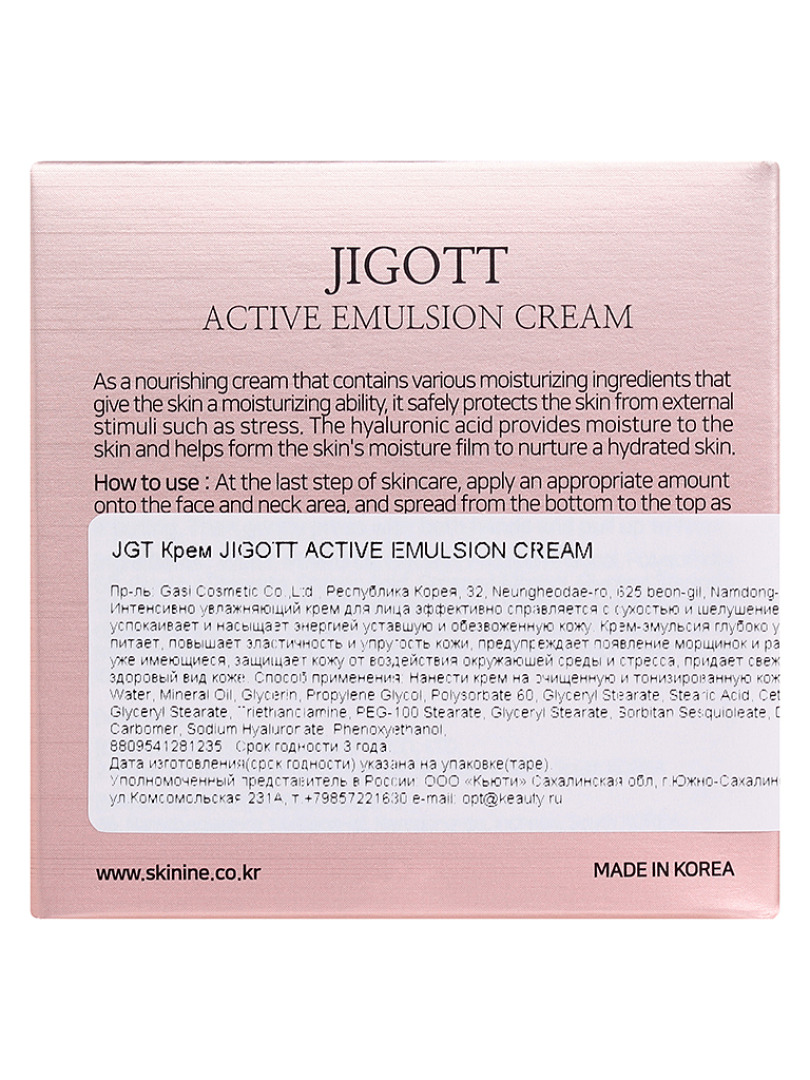JGT CREAM Крем-эмульсия для лица для сухой кожи JIGOTT ACTIVE EMULSION CREAM, 50ml