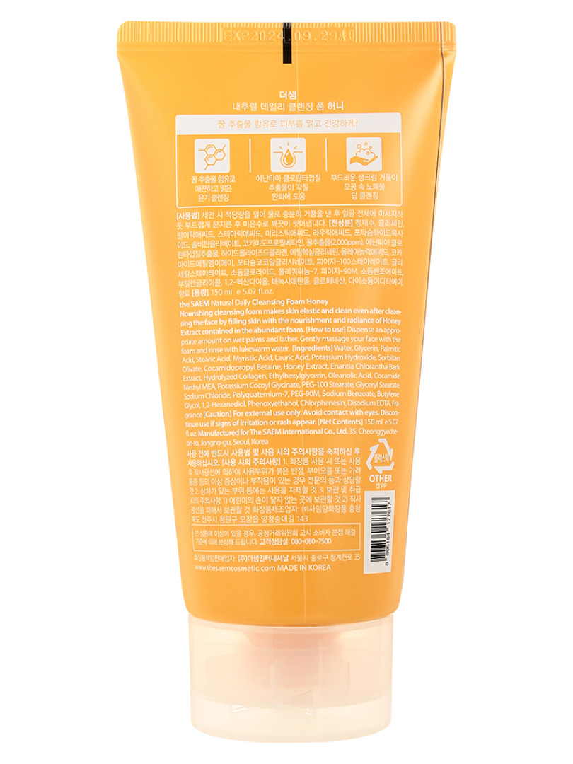 Изг-ль: THE SAEM INTERNATIONAL CO.LTD.", КОРЕЯ, РЕСПУБЛИКА, 10F, 35, Cheonggyecheon-ro, Jongno-gu, Seoul. Очищающая пенка для умывания, идеальное средство для ухода за сухой и чувствительной кожей, нуждающейся в особенно деликатных питательных и увлажняющих компонентах. Экстракт меда отлично заживляет трещинки, шерховатости и следы обветривания на коже, восстанавливает сухую и истонченную кожу, возвращает ей цветущий вид. Способ применения: массирующими движениями нанесите на влажную кожу лица и шеи, после чего смойте водой.