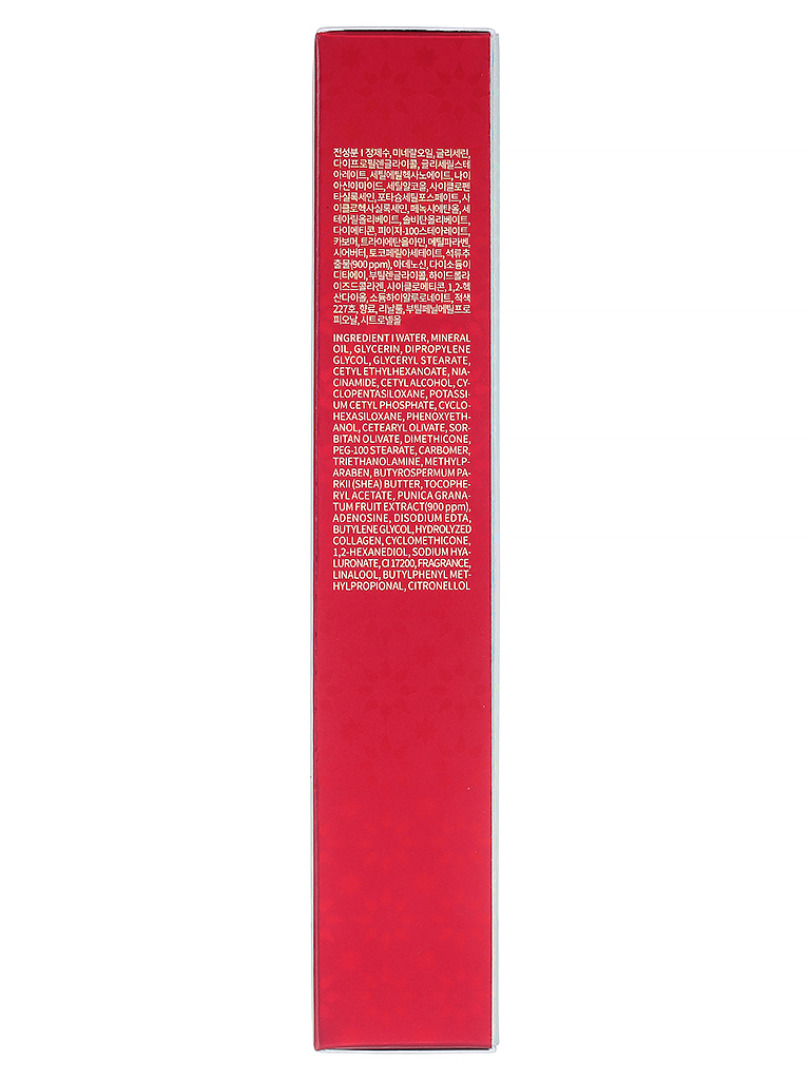 Water, Mineral oil, Glycerin, Dipropylene glycol, Glyceryl stearate, Cetyl ethylhexanoate, Niacinamide, Cetyl alcohol, Cyclopentasiloxane, Potassium cetyl phosphate, Cyclohexasiloxane, Phenoxyethanol, Cetearyl olivate, Dimethicone, Sorbitan olivate , Peg-100 stearate, Carbomer , Triethanolamine, Methylparaben , Butyrospermum parkii (shea) butter, Tocopheryl acetate, Punica granatum fruit extract, Fragrance, Adenosine, Disodium edta, Butylene glycol, Hydrolyzed collagen, 1,2-hexanediol, Ci 17200, Sodium hyaluronate