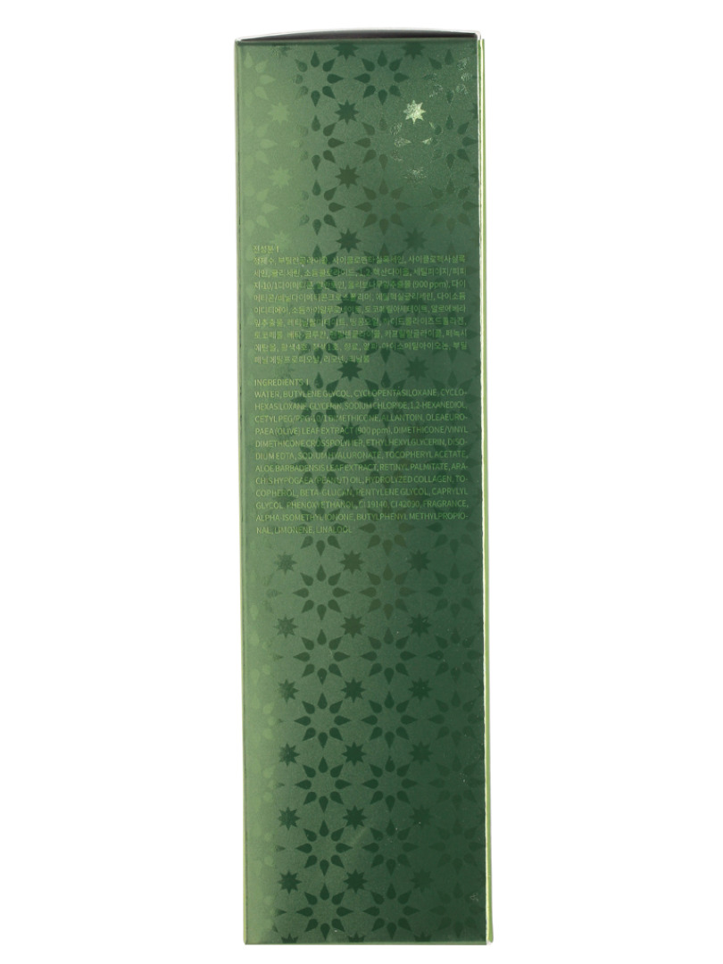 Water, butylene glycol, cyclopentasiloxane, glycerin, sodium chloride, phenoxyethanol, cetyl peg/ppg-10/1 dimethicone, allantoin, olive leaf extract, disodium edta, sodium hyaluronate, tocopheryl acetate, aloe barbadensis leaf extract, peanut oil, hydrolyzed collagen, ci19140, tocopherol, ci42090, beta-glucan, pentylene glycol