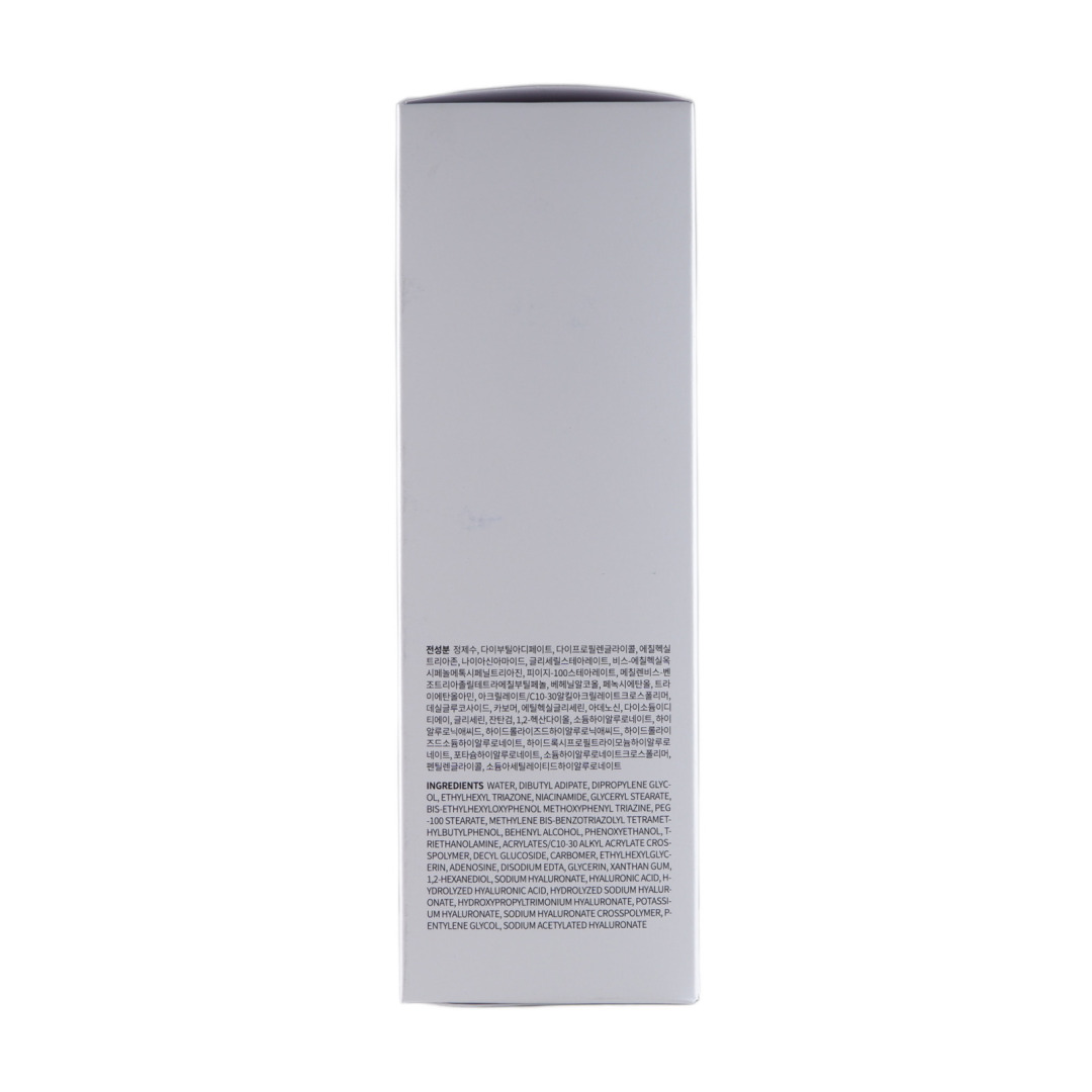 Water, Dibutyl Adipate, Dipropylene Glycol, Ethylhexyl Triazone, Niacinamide, Glyceryl Stearate, Bis-Ethylhexyloxyphenol Methoxyphenyl Triazine, Peg-100 Stearate, Methylene Bis-Benzotriazolyl Tetramethylbutylphenol, Behenyl Alcohol, Phenoxyethanol, Triethanolamine, Acrylates/C10-30 Alkyl Acrylate Crosspolymer, Decyl Glucoside, Carbomer, Ethylhexylglycerin, Adenosine, Disodium Edta, Glycerin, Xanthan Gum, 1,2-Hexanediol, Sodium Hyaluronate, Hyaluronic Acid, Hydrolyzed Hyaluronic Acid, Hydrolyzed Sodium Hyaluronate, Hydroxypropyltrimonium Hyaluronate, Potassium Hyaluronate, Sodium Hyaluronate Crosspolymer, Pentylene Glycol, Sodium Acetylated Hyaluronate