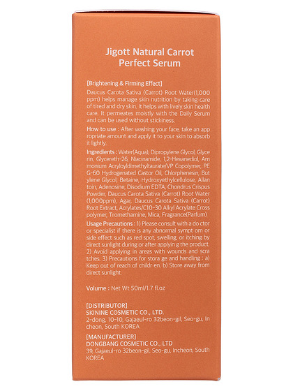 JGT Serum Сыворотка для лица с экстрактом моркови Jigott Natural Carrot Perfect Serum 50ml