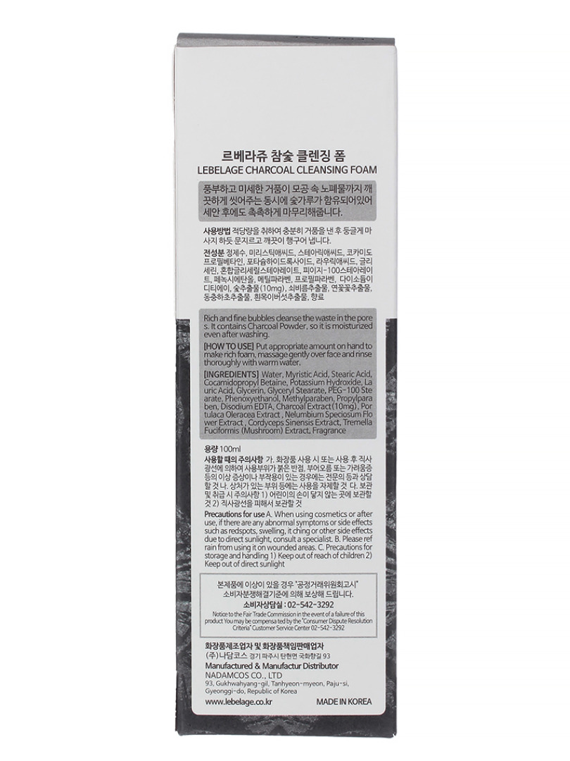 LBLG FOAM Пенка для лица очищающая с экстрактом древесного угля LEBELAGE CLEANSING FOAM 100ml - CHARCOAL