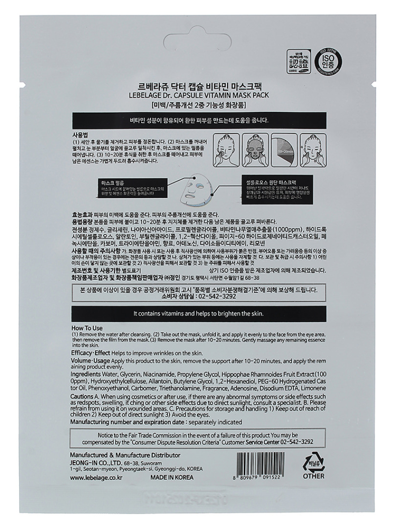 LBLG Маска для лица тканевая витаминная LEVELAGE Dr. CAPSULE VITAMIN MASK PACK