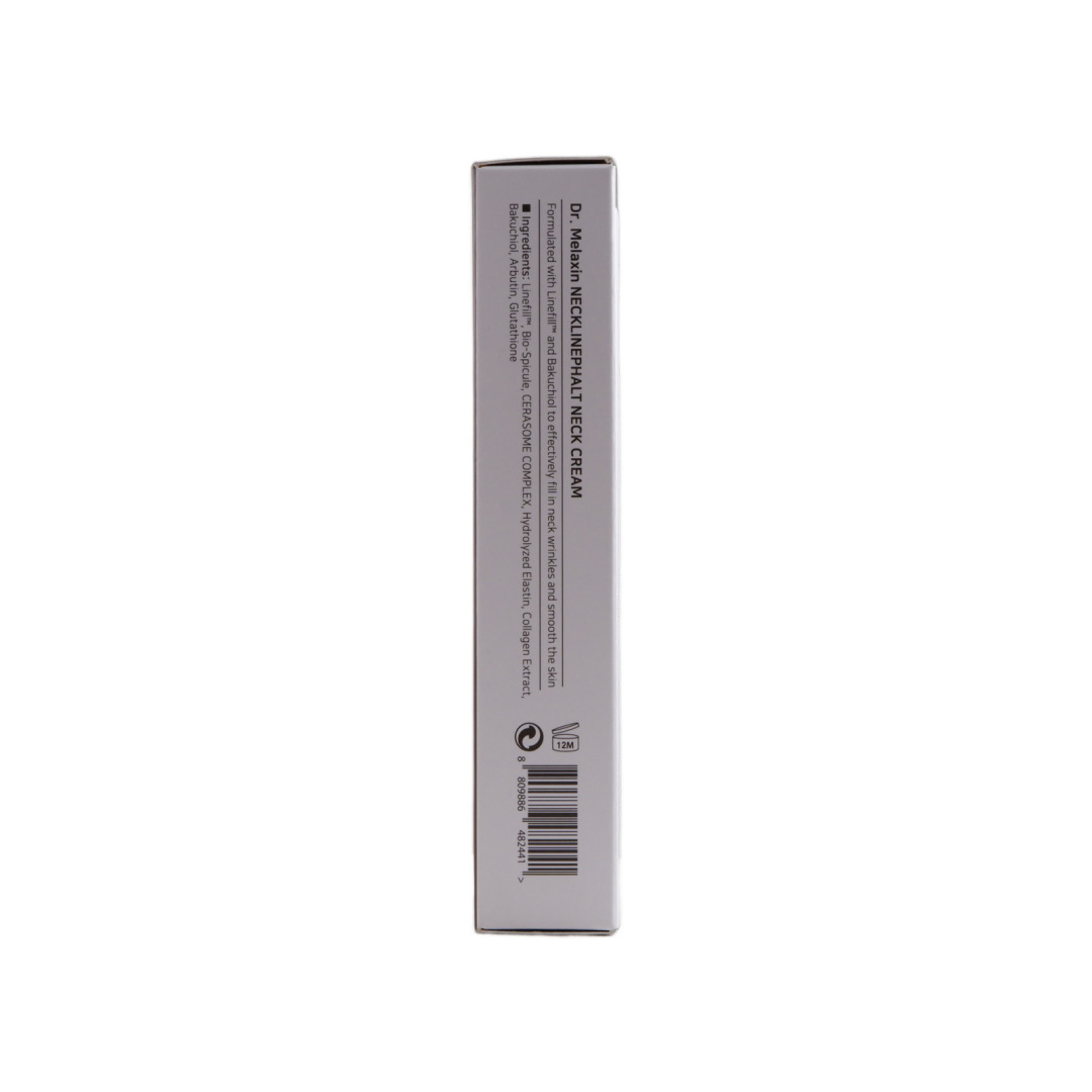 Изг-ль: BRAND 501 Co., Ltd., Корея, Республика, 20, Achasan-ro 9-gil, Seongdong-gu, Seoul. Dr.Melaxin Necklinephalt Neck Cream — крем для шеи с системой доставки активного компонента Linefill™ с помощью био-спикул, которые помогают веществам проникать глубоко в морщины, разглаживать их и повышать упругость кожи. В составе — бакучиол, растительный аналог ретинола, стимулирующий выработку коллагена без раздражения, а также керамиды, коллаген и эластин для восстановления плотности и тонуса. Ниацинамид и арбутин выравнивают тон и уменьшают пигментацию, обеспечивая ровный цвет кожи. Формула увлажняет и укрепляет кожный барьер. Подходит для всех типов кожи, тестирован на безопасность.