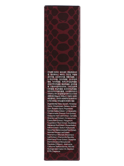 Water, Glycerin, Pentylene Glycol, Chlorphenesin, Betaine, Xanthan Gum, Butylene Glycol, Propanediol, Centella Asiatica Extract, 1,2-Hexanediol, Chaenomeles Sinensis Fruit Extract, Diospyros Kaki Leaf Extract, Camellia Sinensis Leaf Extract, Cinnamomum Cassia Bark Extract, Polygonum Cuspidatum Root Extract, Scutellaria Baicalensis Root Extract, Chrysanthellum Indicum Extract, Sodium Hyaluronate