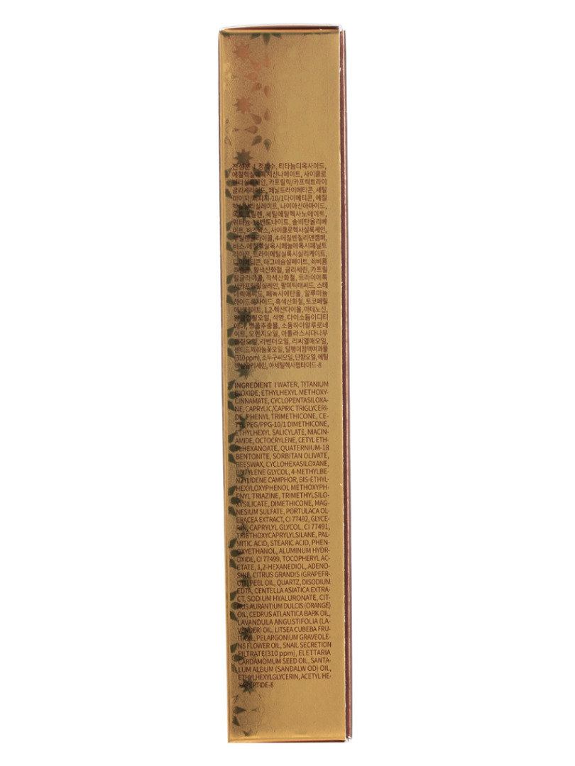 Water, Titanium dioxide, Ethylhexyl methoxycinnamate, Cyclopentasiloxane, Caprylic/capric triglyceride , Phenyl trimethicone, Cetyl peg/ppg-10/1 dimethicone , Ethylhexyl salicylate, Niacinamide, Octocrylene, Cetyl ethylhexanoate, Quaternium-18 bentonite , Sorbitan olivate, Beeswax, Cyclohexasiloxane, Butylene glycol, 4-methylbenzylidene camphor, Bis-ethylhexyloxyphenol methoxyphenyl triazine, Trimethylsiloxysilicate, Dimethicone, Magnesium sulfate, Portulaca oleracea extract, Ci 77492 , Glycerin, Caprylyl glycol , Ci 77491 , Triethoxycaprylylsilane, Palmitic acid, Stearic acid, Phenoxyethanol, Aluminum hydroxide, Ci 77499 , Tocopheryl acetate, 1,2-hexanediol, Adenosine, Citrus grandis (grapefruit) peel oil, Quartz , Snail secretion filtrate , Disodium edta, Propanediol , Centella asiatica extract, Hydrolyzed collagen, Sodium hyaluronate, Citrus aurantium dulcis (orange) oil, Cedrus atlantica bark oil, Lavandula angustifolia (lavender) oil, Litsea cubeba fruit oil, Pelargonium graveolens flower oil, Elettaria cardamomum seed oil, Santalum album (sandalwood) oil, Ethylhexylglycerin, Acetyl hexapeptide-8