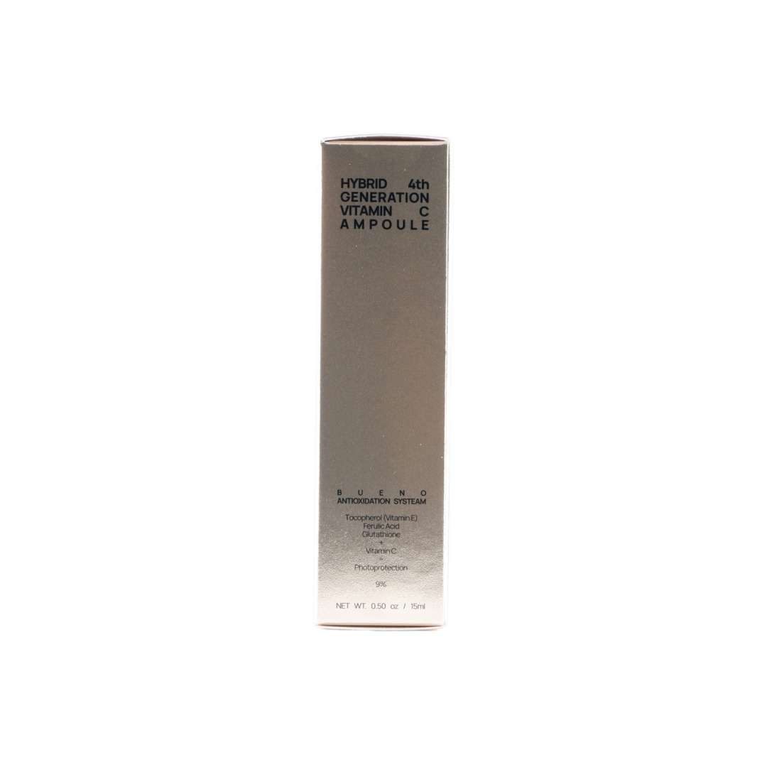Изг-ль: BUENOMEDITECH CO., Ltd., Корея, Республика, #502, 248, Jeongjail-ro, Bundang-gu, Seongnam-si, Gyeonggi-do. Bueno Hybrid 4th Generation Vitamin C Ampoule, 15 мл — высококонцентрированная сыворотка с витамином C для выравнивания тона лица, осветления пигментации и постакне, восстановления сияния кожи и уменьшения тусклости. Формула содержит 9 % аскорбиновой кислоты, глутатион, токоферол (витамин E), трегалозу, феруловую кислоту, масло кокоса и экстракт гибискуса, которые обеспечивают антиоксидантную защиту, стимулируют синтез коллагена, улучшают упругость, увлажняют и защищают кожу.
