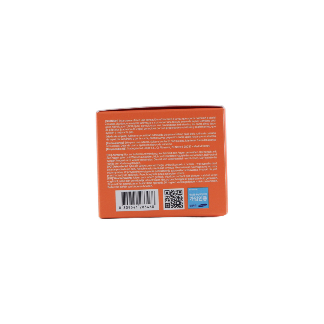 Изг-ль: Skinine Cosmetic Co., Ltd., 2-dong, 10-10, Gajaeul-ro, 32beon-gil, Seo-gu, Incheon, Корея, Республика. Глубокоувлажняющий крем, который повышает эластичность и способствует сиянию кожи лица. Этот легкий крем обогащен гидролизованным коллагеном, 5 видами пептид для борьбы с сухостью, тонкими морщинами и потерей упругости, делая кожу более гладкой, упругой и напитанной. Способ применения: нанесите крем на последнем этапе по уходу за кожей.