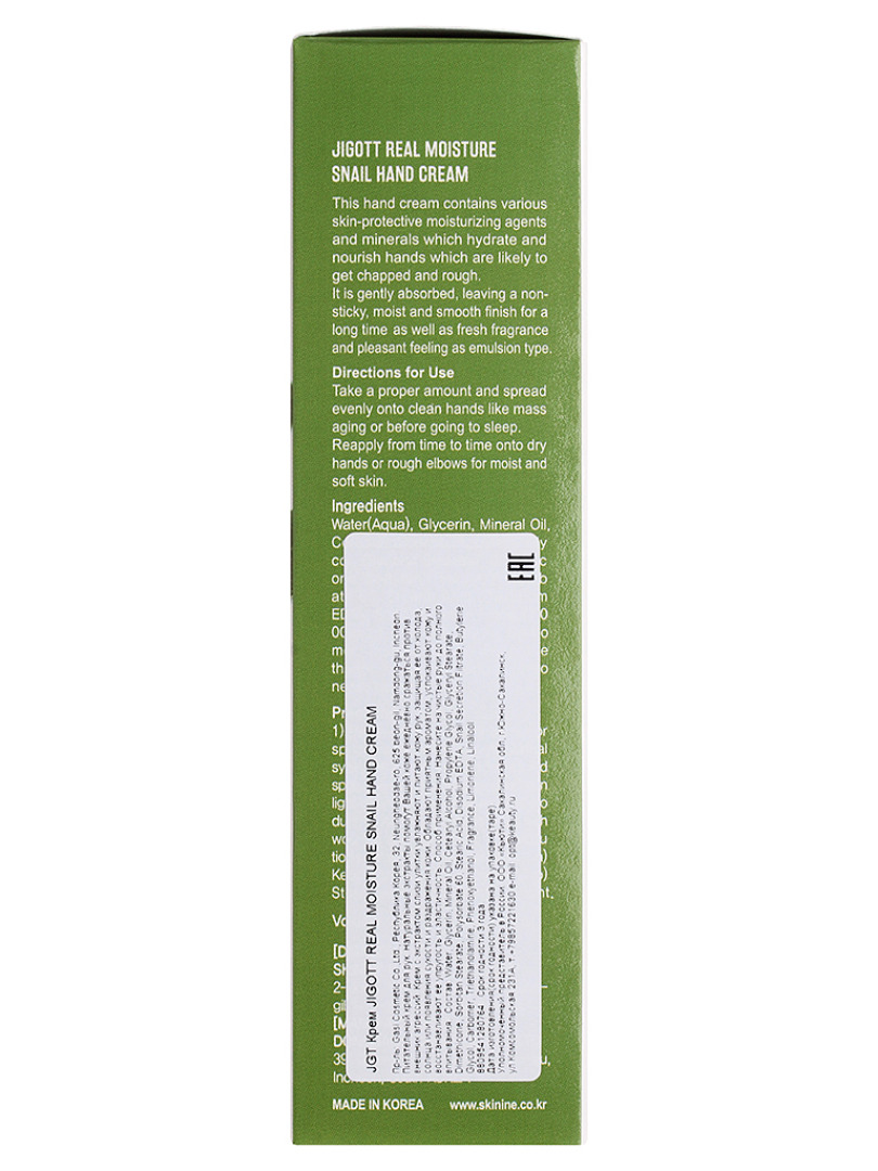 JGT HAND Крем для рук с муцином улитки JIGOTT REAL MOISTURE SNAIL HAND CREAM, 100ml