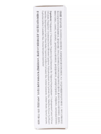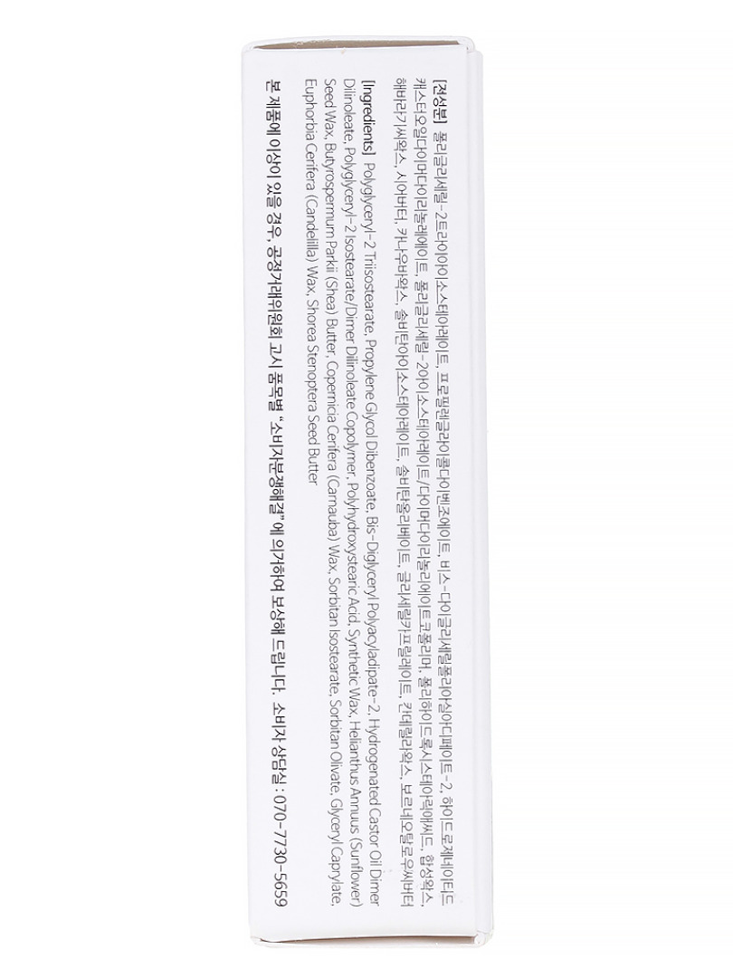 Polyglyceryl-2 Triisostearate, Propylene Glycol Dibenzoate, Bis-Diglyceryl Polyacyladipate-2, Hydrogenated Castor Oil Dimer Dilinoleate, Polyglyceryl-2 Isostearate/Dimer Dilinoleate Copolymer, Polyhydroxystearic Acid, Synthetic Wax, Helianthus Annuus (Sunflower) Seed Wax, Butyrospermum Parkii (Shea) Butter, Copernicia Cerifera (Carnauba) Wax, Sorbitan Isostearate, Sorbitan Olivate, Glyceryl Caprylate, Euphorbia Cerifera (Candelilla) Wax, Shorea Stenoptera Seed Butter