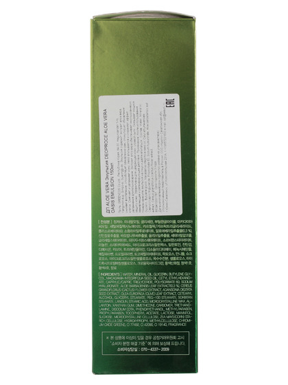 Изготовитель: GREENCOS Co.Ltd., Республика Корея, 64-30, Hagunsandan 1-ro, Yangchon-eup, Gimpo-si, Gyeonggi-do. Эмульсия содержит экстракт алоэ вера, снимает воспаление, способствует заживлению ран, стимулирует обновление клеток. Смягчает и увлажняет кожу, легко впитывается и сохраняет эффект увлажнения длительное время. Экстракт алоэ вера обеспечивает многоуровневую защиту кожи. Эффективна для увядающей кожи, угревой сыпи. Оказывает мощное заживляющее и регенерирующее действие.
