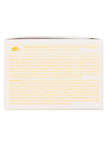 Water, Cyclopentasiloxane, Butylene Glycol, Cyclohexasiloxane, Synthetic Wax, Dimethicone, Glycerin, Cetyl Peg/Ppg-10/1 Dimethicone, Phenyl Trimethicone, Niacinamide, Stearyl Dimethicone, Magnesium Sulfate, Dimethiconol, Panthenol, Octadecene, "Dimethicone/Vinyl Dimethicone, Crosspolymer", Caprylyl Glycol, Glyceryl Caprylate, Citrus Junos Fruit Extract, Limonene, Hippophae Rhamnoides Oil, Disodium Edta, Ethylhexylglycerin, Adenosine, Citrus Junos Peel Oil, Cyclomethicone, 1,2-Hexanediol, Sodium Hyaluronate, Linalool, Hydrogenated Lecithin, Polyglyceryl-10 Stearate, Sodium Ascorbyl Phosphate, Tocopheryl Acetate, Glyceryl Arachidonate, Glyceryl Linolenate, Biotin, Folic Acid, Pyridoxine, Retinyl Palmitate, Thiamine Hcl, Cyanocobalamin