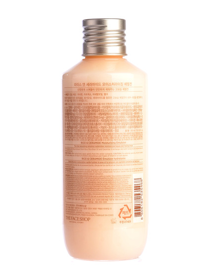 Изготовитель: THE FACE SHOP CO. LTD., КОРЕЯ, РЕСПУБЛИКА, 58, Saemunan-ro, Jongno-gu, Seoul. Эмульсия содержит рисовое молочко и керамиды, которые глубоко увлажняют кожу и активизируют процессы ее обновления. Оказывает значительный увлажняющий эффект, делает кожу гладкой, ровной и светящейся. Натуральные аминокислоты помогают сохранить эластичность кожи, предотвращая образование морщин. Керамиды выступают в роли увлажнителя, помогая клеткам сохранить гидробаланс, поддерживают тургор лица и шелковую гладкость кожи. Подходит для всех типов кожи, в особенности для сухой.