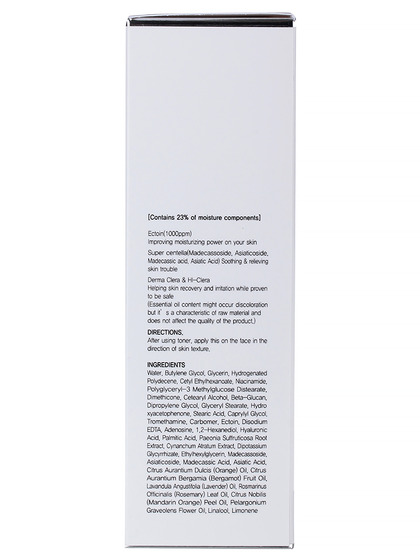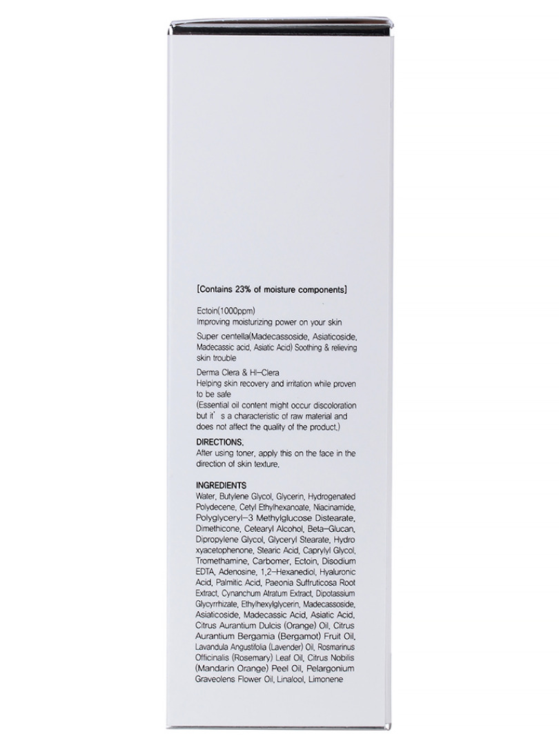 Изг-ль: T.O.M. Co., Ltd., Daeyoung Plaza-701, 103, Doraeul-ro, Deogyang-gu, Goyang-si, Gyeonggi-do, Республика Корея. Эмульсия с высоким содержанием увлажняющих компонентов успокаивает и интенсивно увлажняет кожу лица. В состав входят ингредиенты, полученные из центеллы азиатской: мадекассосид, эктоин, азиатикозид, азиатиковая кислота и мадекассовая кислота. Средство с приятной кремовой текстурой предотвращает потерю влаги, помогает уменьшить сухость и шелушения. Способ применения: нанесите на очищенную кожу лица массажными движениями. Используйте после применения тонера.
