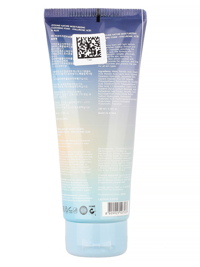 Изг-ль: SINDO P&G Co., LTD., Корея, Республика, 28, Namdongseo-ro 270 beon-gil, Namdong-gu, Incheon. Увлажняющая пенка с воздушной текстурой бережно удаляет остатки макияжа и другие загрязнения кожи, обеспечивая необходимый уход. Формула с мультигиалуроновым комплексом эффективно увлажняет кожу, восстанавливая ее упругость. Экстракт алоэ успокаивает и насыщает влагой, а масло ши питает и защищает кожный покров.Подходит для всех типов кожи. Применение: нанесите небольшое количество пенки на влажную кожу лица и распределите массирующими движениями, чтобы удалить загрязнения. Затем тщательно смойте теплой водой. Меры предосторожности: избегать попадания в глаза, в случае возникновения раздражения прекратить использование.