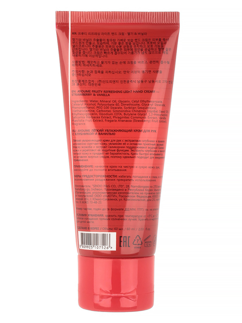 АЮМ Hand Крем для рук с клубникой и ванилью Fruity refreshing light hand cream with strawberry and vanilla 60ml