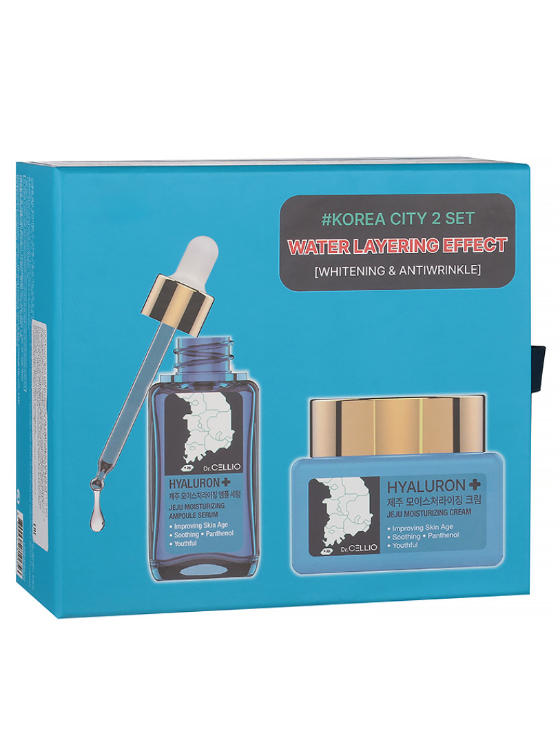 DR.CELLIO Набор уходовый для лица с гиалуроновой кислотой [Korea City cream+serum set] DR.CELLIO plus JEJU HYALURON MOISTURIZING CREAM+AMPOULE SERUM