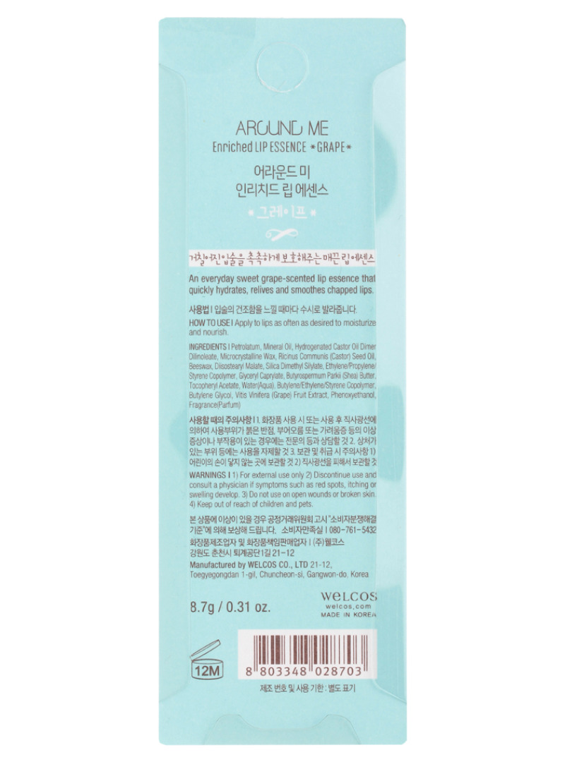 Изготовитель: Welcos Seoul Co.Ltd., КОРЕЯ, РЕСПУБЛИКА, 1302, Miwon B/d, 70, Gukjegeumyung-ro, Yeongdeungpo-gu, Seoul. Эссенция для губ создает увлажняющее покрытие. Содержит масло ши и пчелиный воск. Средство смягчает и защищает от обветривания, отшелушивает мертвые клетки кожи губ. Освежающий аромат винограда создает прекрасное настроение на весь день. Не раздражает кожу губ. Способ применения: небольшое количество эссенции выдавить из тюбика, нанести на губы массажными движениями.